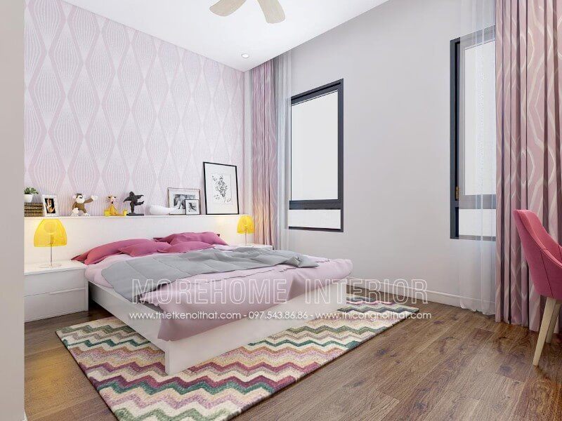 Thiết kế nội thất giường ngủ con gái phong cách hiện đại, dễ thương