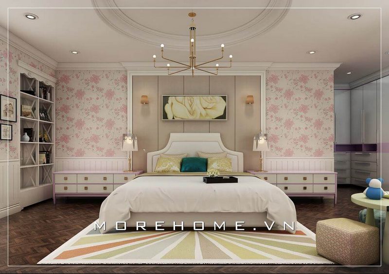 Gợi ý mẫu giường ngủ tân cổ điển cho phòng ngủ con gái tại chung cư, biệt thự cao cấp