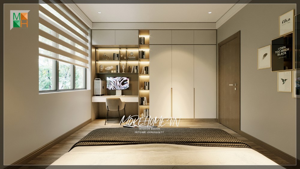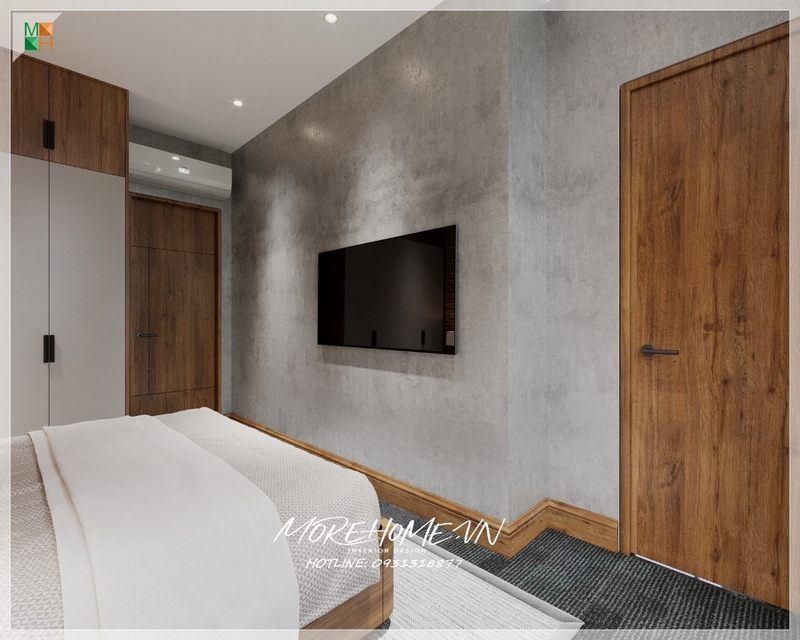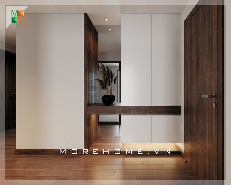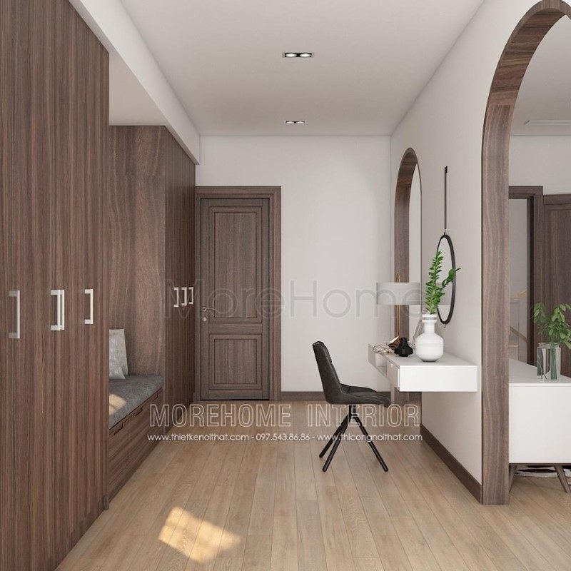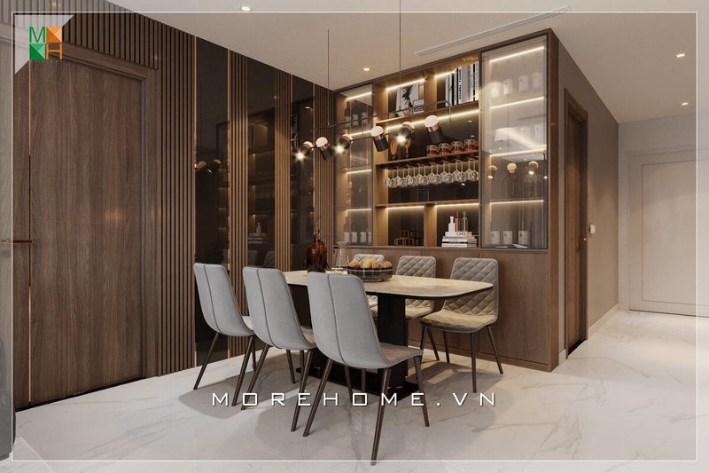 Gợi ý mẫu cửa gỗ 1 cánh ngăn cách giữa phòng ngủ và phòng ăn mang đến sự riêng tư cho căn hộ chung cư hiện đại