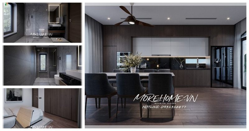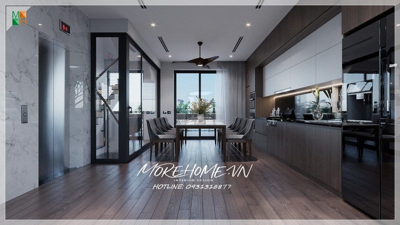 Phòng ăn liền bếp giúp cho diện tích thông thoáng thuận tiện cho sinh hoạt đem lại sự hiện đại cho căn nhà