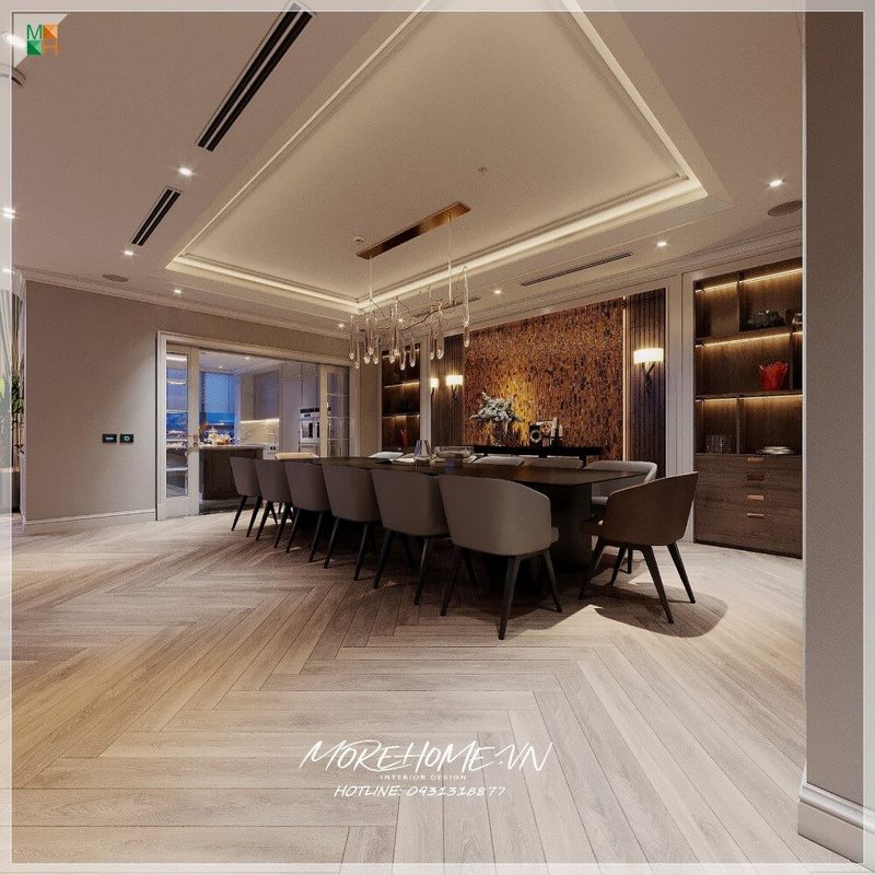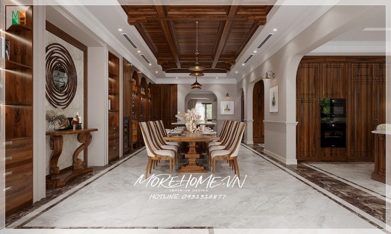 Thiết kế phòng ăn không gian mở sang trọng cho chung cư, nhà phố, biệt thự nội thất gỗ óc chó phong cách tân cổ điển