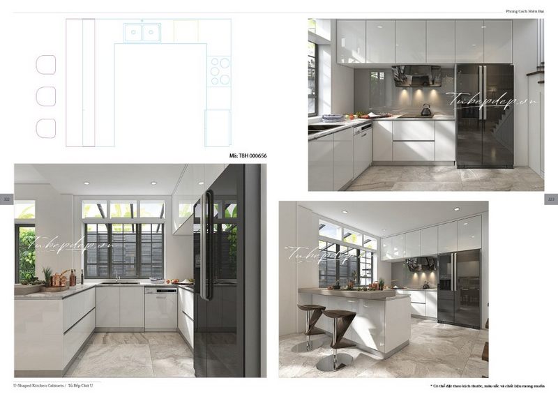Mẫu thiết kế nội thất phòng bếp để làm cho nhà biệt thự trở nên đẹp.