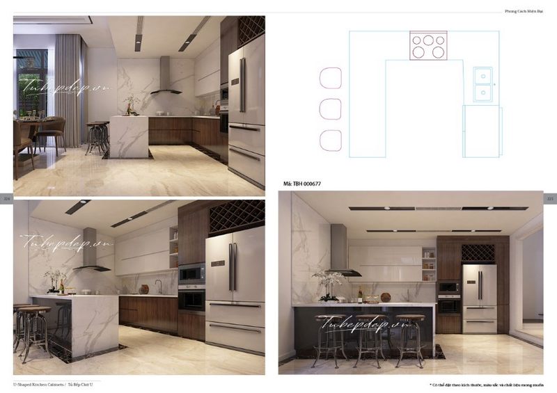 Thiết kế phòng bếp với nội thất gỗ công nghiệp đẹp mắt, cổ điển và hiện đại.