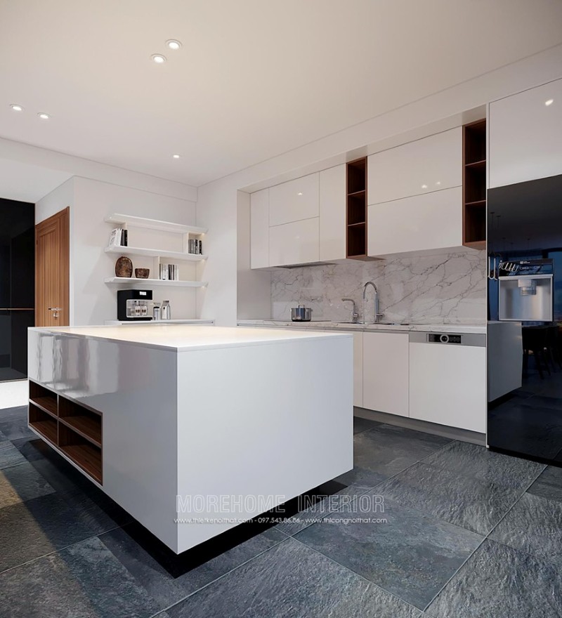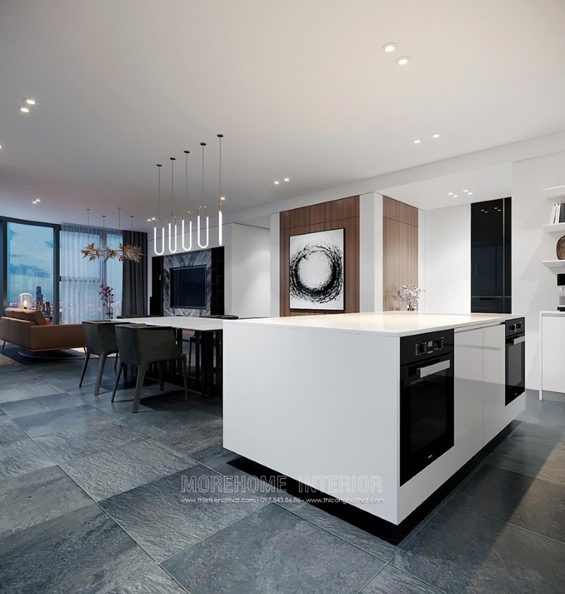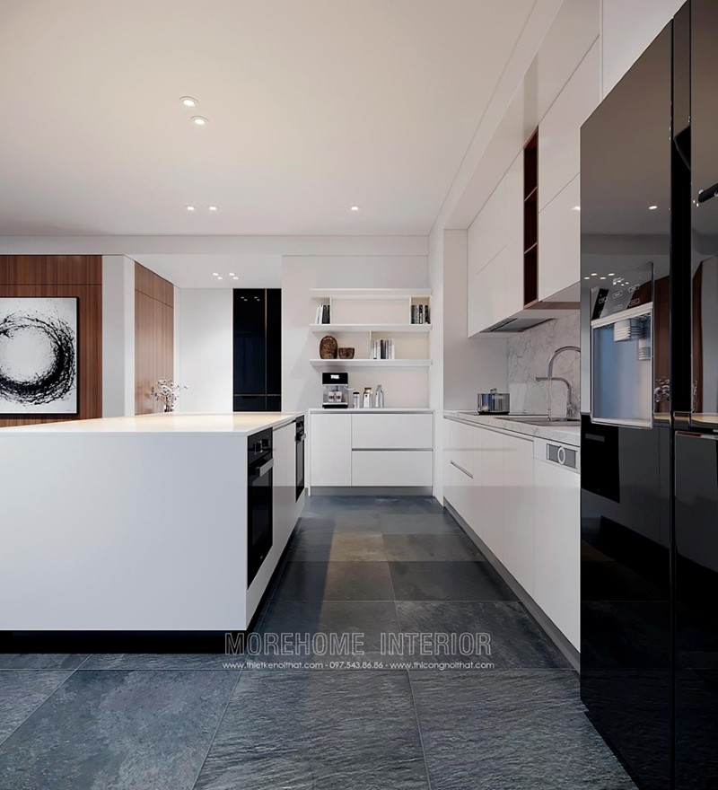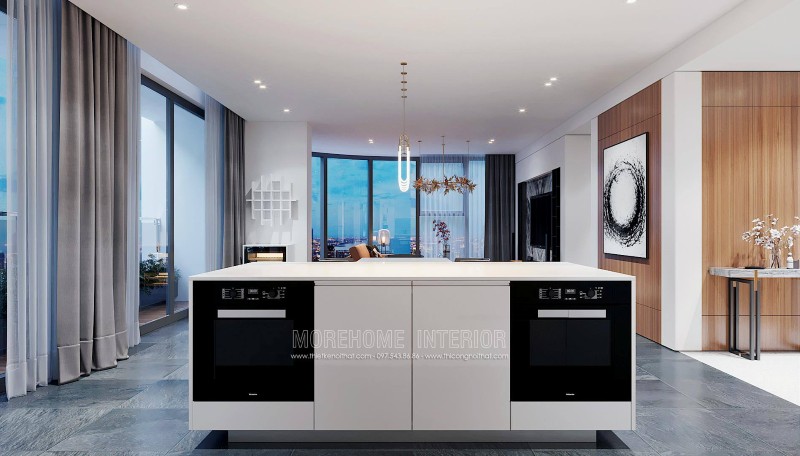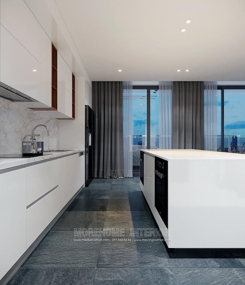 Mẫu tủ bếp hiện đại tại căn hộ Vinhomes BaSon Sài Gòn hiện đại.