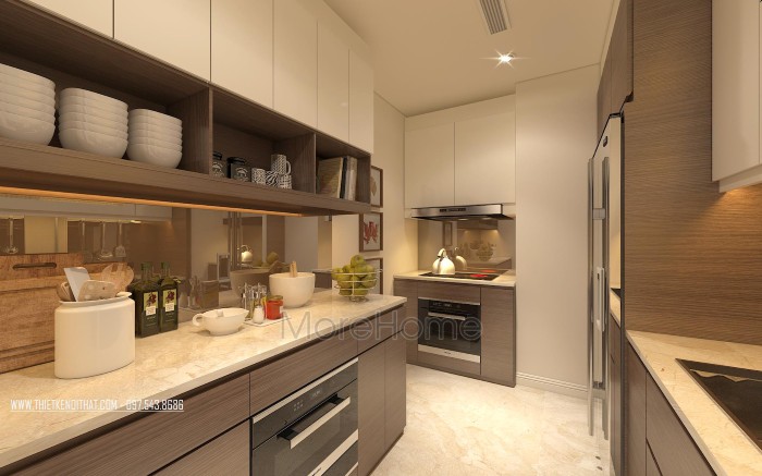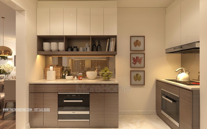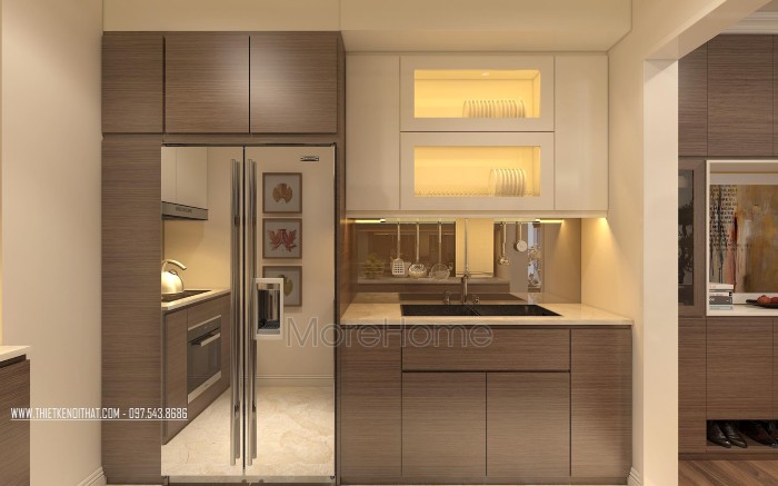 Tủ bếp laminate tại chung cư ngoại giao đoàn - HN với sự kết hợp 2 màu tương phản mang lại sự hiện đại, mới mẻ cho không gian bếp. Đây là mẫu tủ bếp được rất nhiều khách hàng yêu thích.