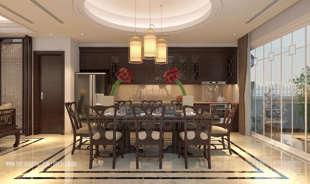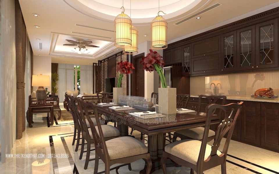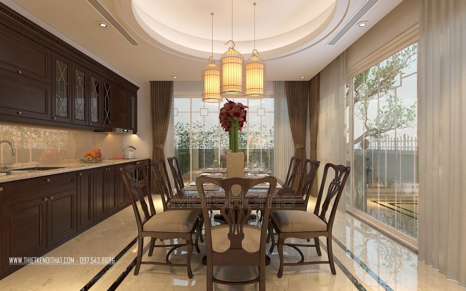 Tủ bếp gỗ óc chó tại biệt thự Vinhomes Thăng Long này sử dụng màu nâu socola trầm ấm đặc trưng mang lại vẻ đẹp thân thiện, đẳng cấp nhưng vô cùng ấm áp, gần gũi. Tủ bếp được thiết kế khá đơn giản với kiểu dáng chữ I, hệ thống tủ bếp kéo dài đảm bảo tính công năng lại giúp tiết kiệm không gian, tủ bếp ấn tượng với những đường nét sắc sảo và tinh tế không chê vào đâu được.